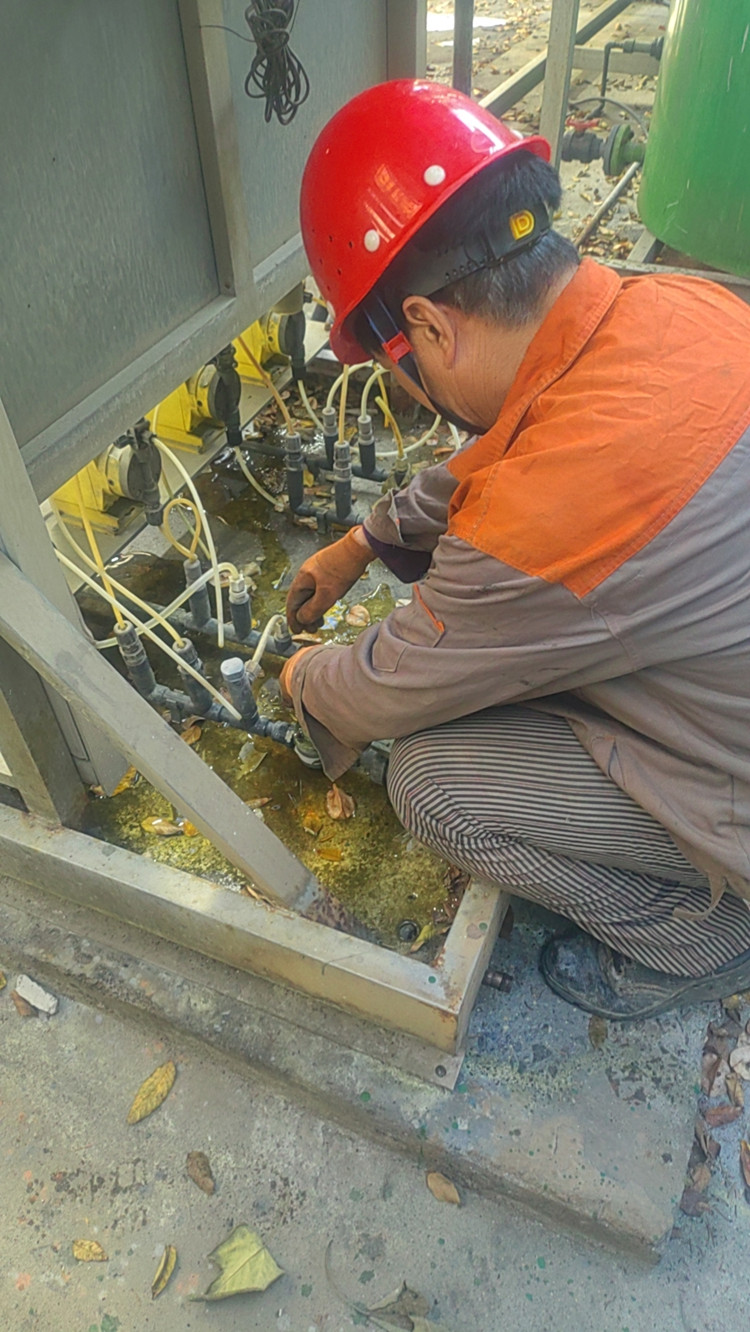 在繁忙的一天中,冠潔工程隊(duì)又如期至兩家工業(yè)循環(huán)水處理總承包單位進(jìn)行上門服務(wù)。他們的工作涵蓋了巡檢、加藥、取樣等多個(gè)環(huán)節(jié),每一步都細(xì)致入微,一絲不茍。
