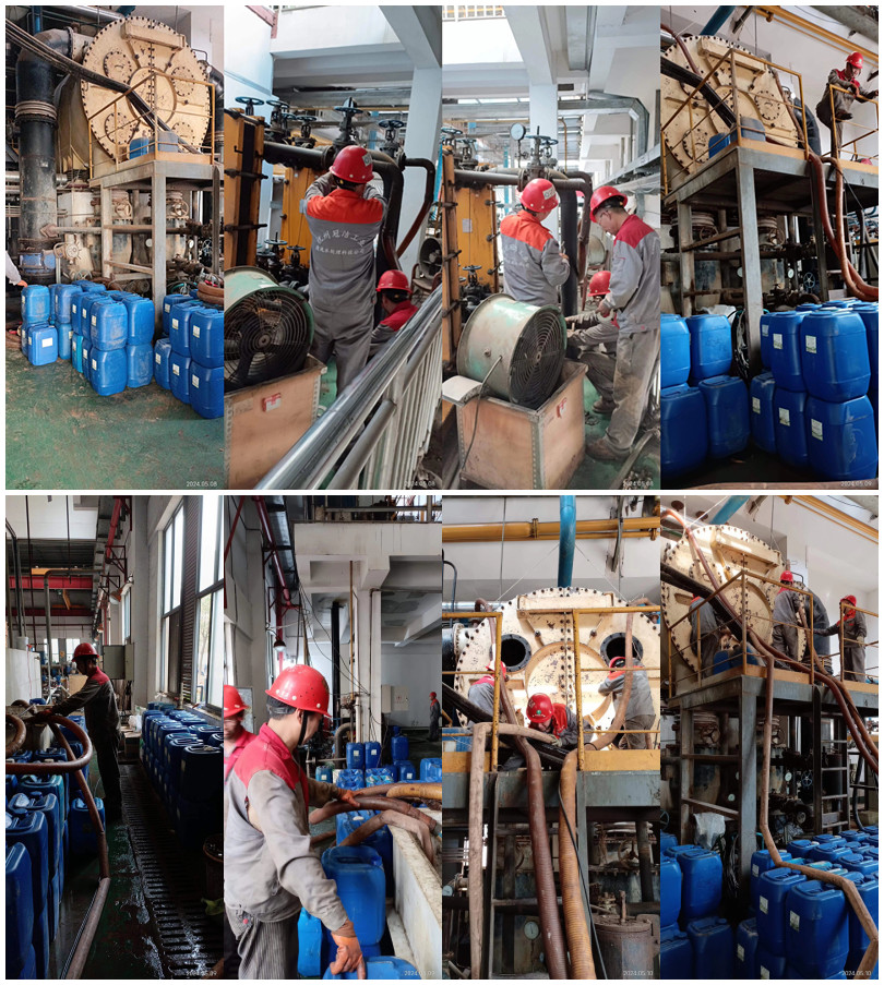 凝汽器化學(xué)清洗是通過(guò)添加化學(xué)試劑溶解或分解結(jié)垢的一種有效方法。針對(duì)不同類型的結(jié)垢成分,選擇合適的清洗劑是關(guān)鍵。常用的化學(xué)清洗劑包括酸性和堿性清洗劑,它們能夠針對(duì)性地去除碳酸鹽垢、硫酸鹽垢和有機(jī)垢等?;瘜W(xué)清洗具有清洗徹底、效率高的優(yōu)點(diǎn),但需要注意控制清洗劑的濃度和時(shí)間,以避免對(duì)凝汽器產(chǎn)生腐蝕。同時(shí),凝汽器化學(xué)清洗后需要及時(shí)進(jìn)行排放和中和處理,確保不對(duì)環(huán)境造成二次污染。
