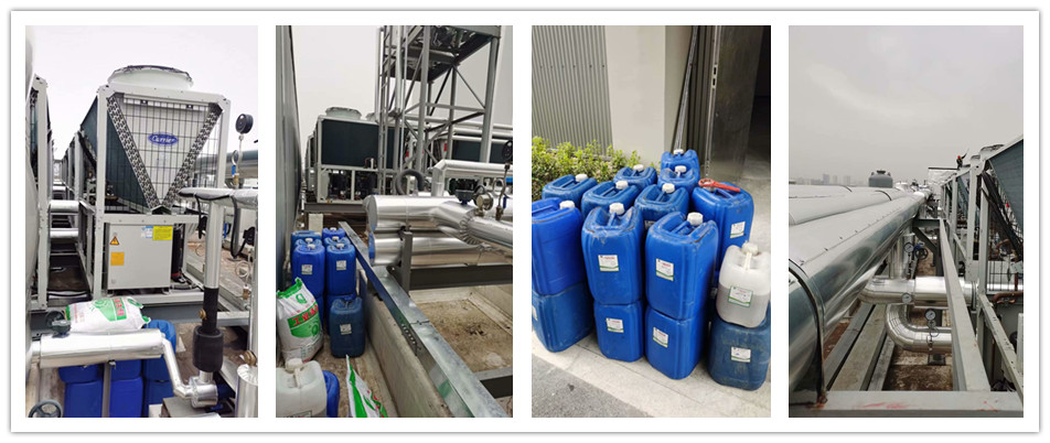 2021年3月21日,杭州開發(fā)區(qū)日資企業(yè)新建廠房,所有設(shè)備都是新的,新建的中央空調(diào)循環(huán)水管路開車前清洗預(yù)膜工程開工。前后兩家企業(yè)連續(xù)的中央空調(diào)清洗預(yù)膜工程開工,忙得不可開交。