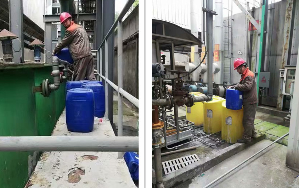 又到水處理現(xiàn)場巡檢加藥時間了。周五,冠潔工程部的技術員來到德清某化工公司進行周期性循環(huán)水處理加藥、取水樣進行檢測等工作。