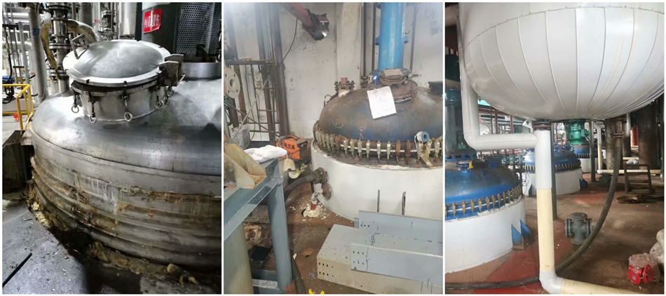 2021年7月22日,臺州某醫(yī)藥化工企業(yè)反應(yīng)釜夾套清洗繼續(xù)。水夾套清洗遇到阻礙,反應(yīng)釜上下盤管堵死,只有部分基本打通,冠潔技術(shù)員經(jīng)取垢樣化驗(yàn)分析,采取純除垢劑慢慢下灌浸泡等一系列方法,終于一點(diǎn)點(diǎn)通了,這種硬垢結(jié)得如此頑固,直接把盤管給堵死了,設(shè)備已病入膏肓,很難清除,只有進(jìn)行反應(yīng)釜化學(xué)清洗才可能徹底除垢。