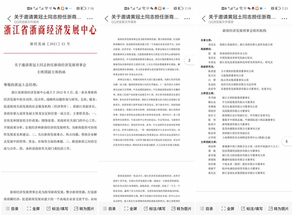 黃冠土同志受邀擔任浙江經濟發(fā)展理事會主席團副主席