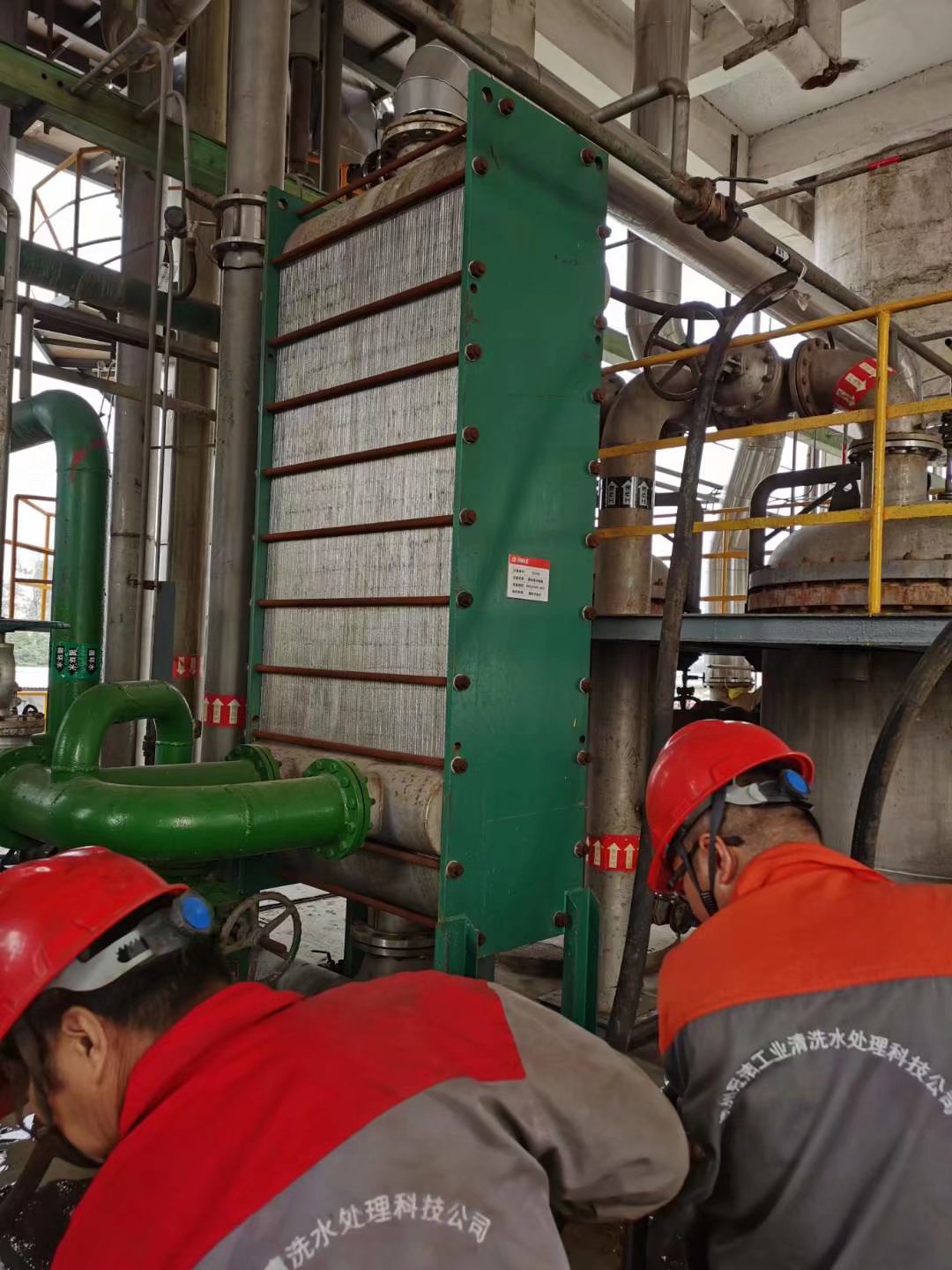 業(yè)主見到如此厚重的結(jié)垢,和高效率的清洗效果,又加了一套大型的板式換熱器繼續(xù)清洗,多套設(shè)備同時進行,為了趕工期,我們起早貪黑,連夜加班,板式換熱器清洗施工繼續(xù)。