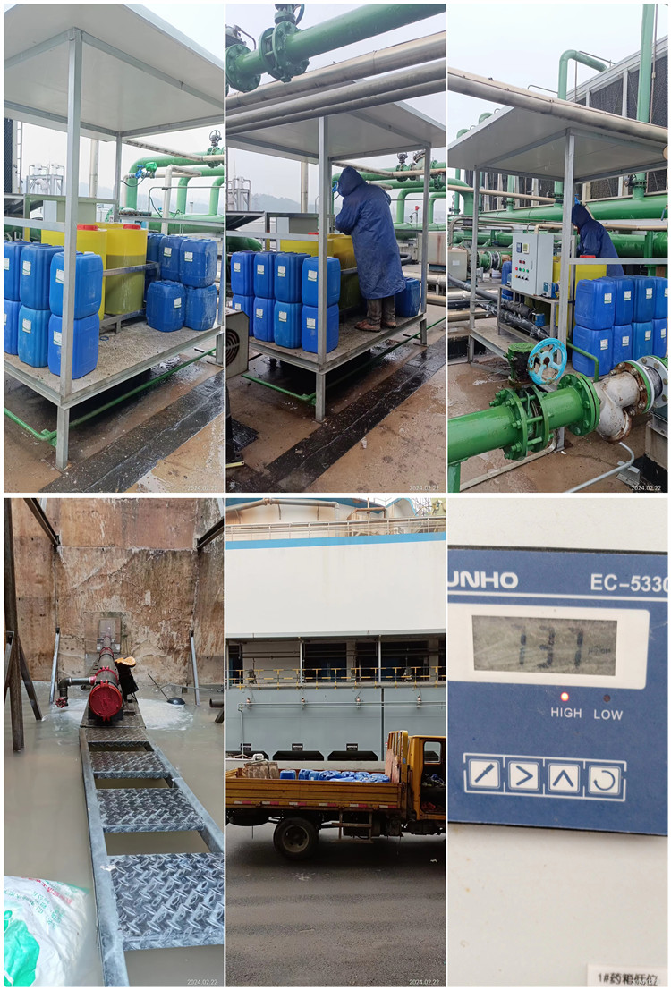 在這場行動中,冠潔工程的技術(shù)人員們首先對循環(huán)水處理進(jìn)行加藥處理。他們嚴(yán)格按照規(guī)定劑量,添加高效的水處理劑,以保證水質(zhì)的安全和穩(wěn)定。在此基礎(chǔ)上,他們還對現(xiàn)場進(jìn)行了仔細(xì)的巡檢,以確保設(shè)備運(yùn)行正常,無安全隱患。