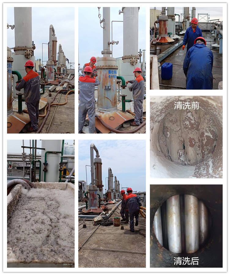 目的地,嘉興乍浦獨山港化工園區(qū),那是著名上市公司的驕傲之地,此刻,黃工帶領(lǐng)著冠潔技術(shù)團隊正忙碌于一批冷凝器的化學清洗工作。梅雨時節(jié),細雨綿綿,宛如天空也在為他們的辛勤付出而灑下淚珠。然而,雨水無法阻擋他們前進的步伐,因為客戶的檢修需求就是他們心中的燈塔,指引著他們風雨無阻,日夜兼程。