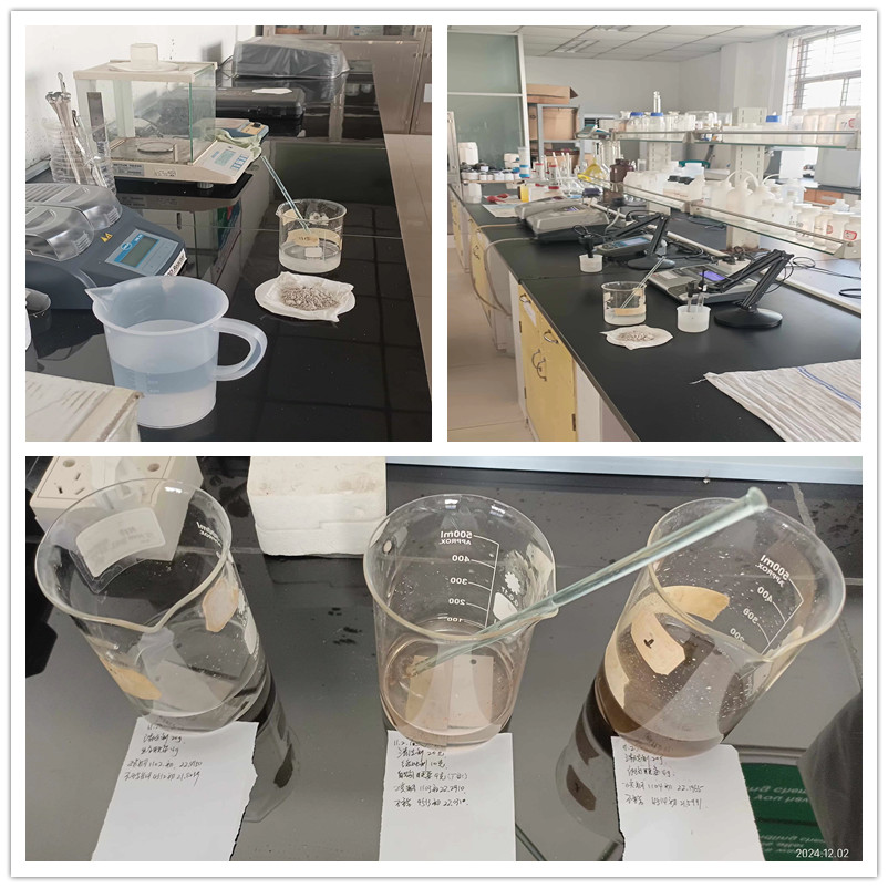 在施工現(xiàn)場熱火朝天的同時,實驗室內(nèi)的工作同樣緊張而有序。黃工,作為此次項目的實驗室負責人,正忙著按各種緩蝕劑比例進行測試。他深知,緩蝕劑的選擇和使用對于凝汽器清洗效果至關重要。因此,他親自上陣,細心調(diào)配每一種試劑,并通過標準腐蝕試片來測量腐蝕率。這一過程中,黃工不僅展現(xiàn)出了其深厚的專業(yè)知識,更體現(xiàn)出了對工作的嚴謹態(tài)度和高度責任感。